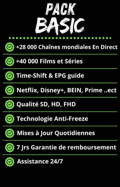Bienvenue sur BCHR STORE, votre destination ultime pour un divertissement sans limites! Grâce à notre abonnement , accédez à une multitude de chaînes en direct, des films à la demande, des séries captivantes et bien plus encore. Profitez de la meilleure qualité d’image, d’une navigation fluide et d’une disponibilité 24/7, le tout à portée de clic.